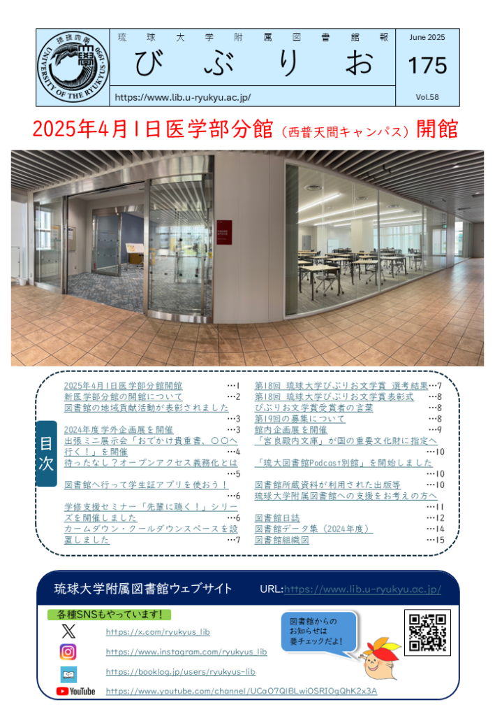 図書館では、図書館の各種取り組みを紹介する目的で、館報「びぶりお」を発行しています。(2020年から年1回の刊行)。