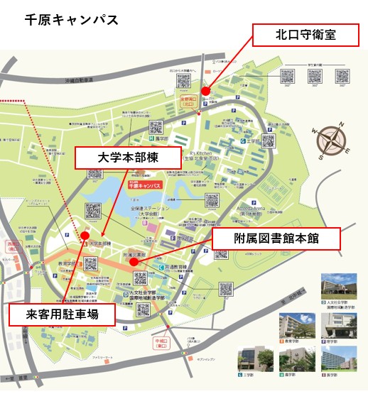 ・来館の際は、千原キャンパス北口から入構し、北口守衛室にて「入構許可証」の発行を申請してください。
