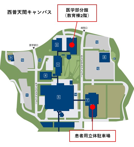 【医学部分館(西普天間キャンパス)へ車でお越しの場合】