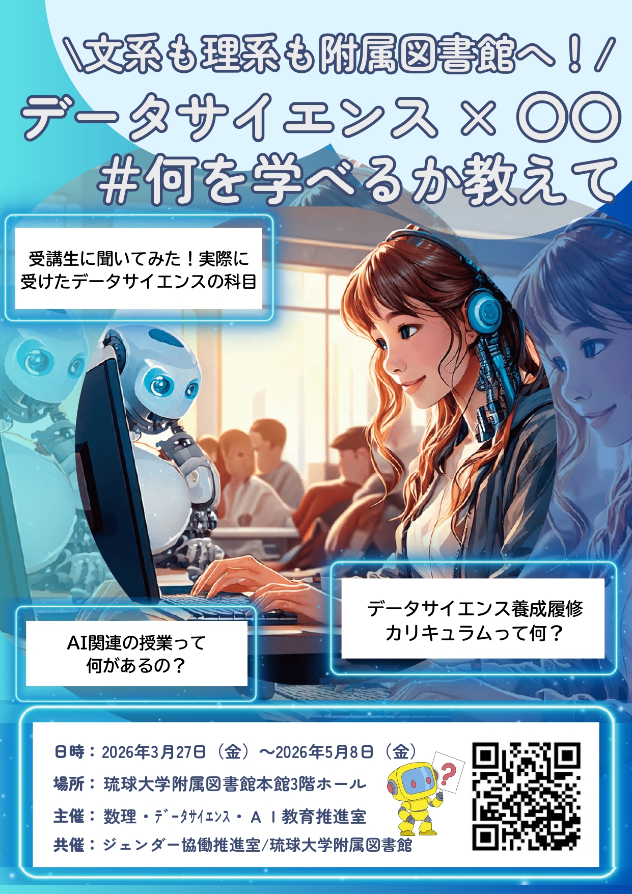 【5/8まで開催】企画展「\文系も理系も附属図書館へ!/ データサイエンス×○○ #何を学べるか教えて」